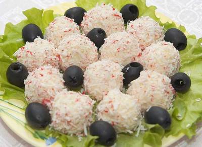 Маслины без косточек- 1 банка Орехи грецкие чищеные - 100 г Сыр твердых сортов - 100 г Крабовые палочки - 1 пачка Чеснок 1-2 зубчика Майонез - 2-3 ст. ложки