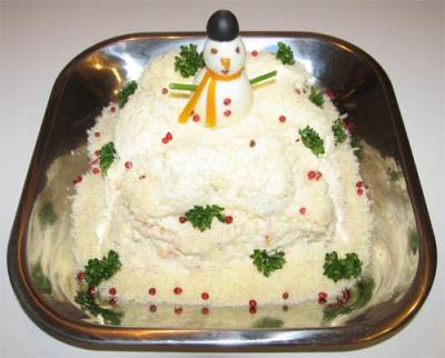 картофель - 3-4 шт. лук репчатый - 2 шт. морковь - 4 шт. яйца - 5-6 шт. мясо курицы отварное майонез укроп чеснок